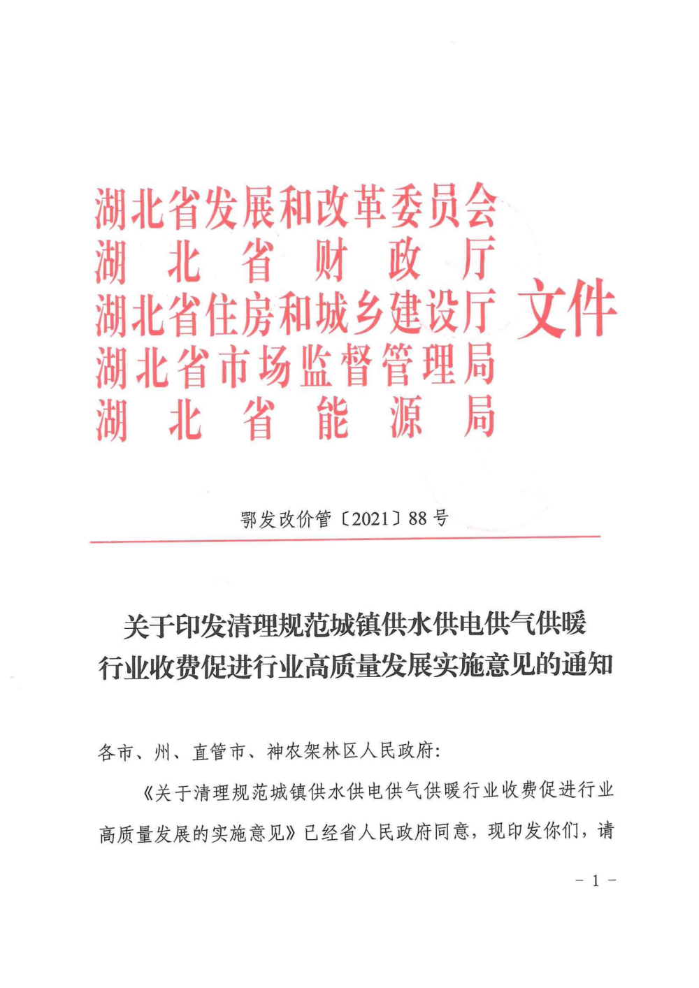 關(guān)于印發(fā)清理規(guī)范城鎮(zhèn)供水供電供氣供暖行業(yè)收費(fèi)促進(jìn)行業(yè)高質(zhì)量發(fā)展實(shí)施意見的通知