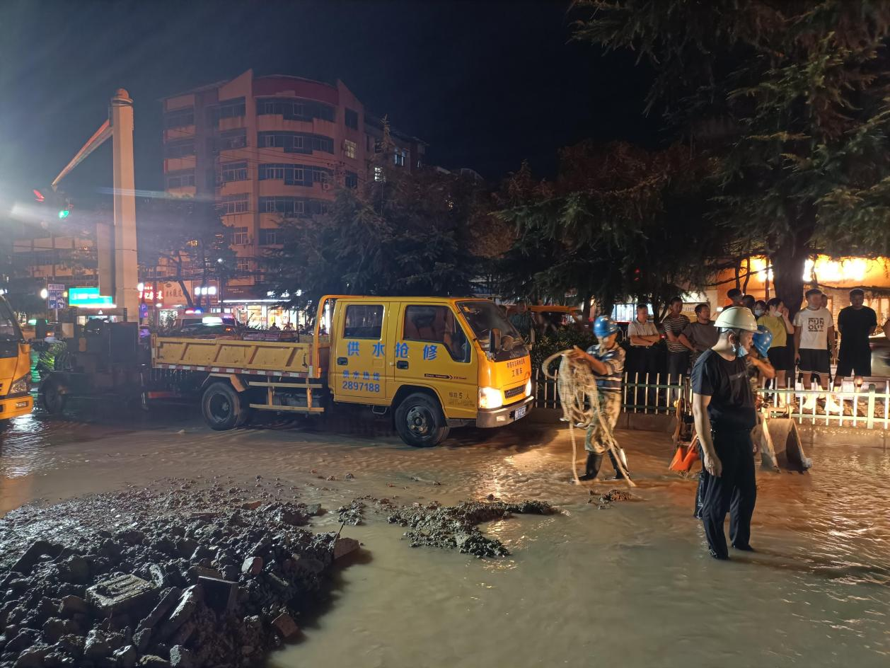 7月28日7時許,長征路與建設路交叉路口附近的一條直徑600毫米的供水主管道突發爆管,造成周邊居民用水受到嚴重影響。接到市民反映,公司立即組織搶修人員第一時間趕赴現場。搶修人員在勘察現場確定漏點的同時,根據管徑大小和材質,制定了維修方案,并緊急聯系挖掘機、動力站進行增援