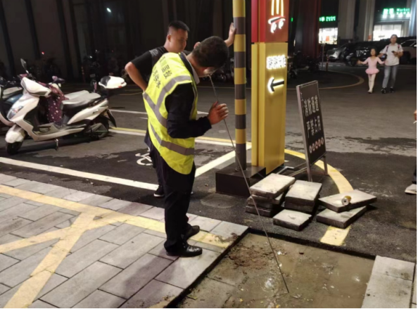 7月2日下午5點(diǎn)左右,公司客服熱線接到用戶反映,北京路民邦熙公館小區(qū)突然停水??蛻舴?wù)部工作人員第一時(shí)間來(lái)到現(xiàn)場(chǎng),經(jīng)現(xiàn)場(chǎng)勘查發(fā)現(xiàn),小區(qū)進(jìn)水管道漏水,初步懷疑是內(nèi)部管道存在漏點(diǎn),造成停水。
