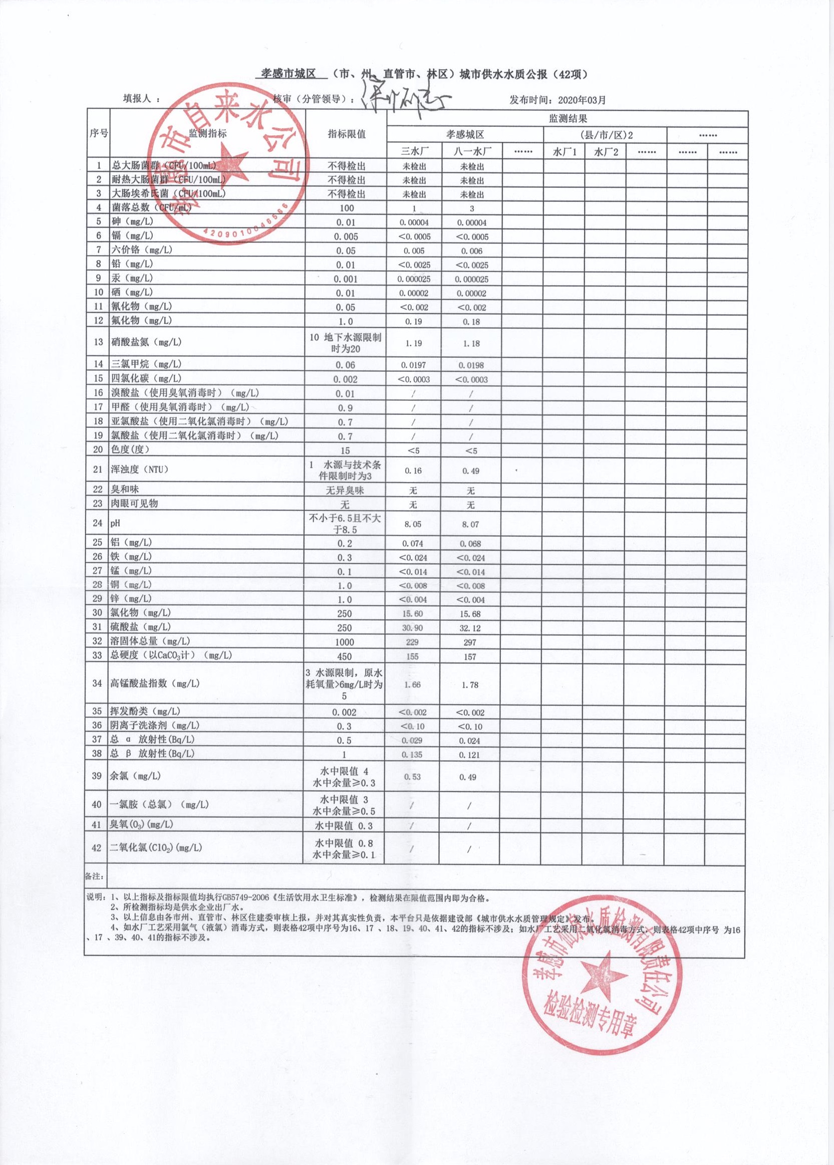 2020年3月水質報告