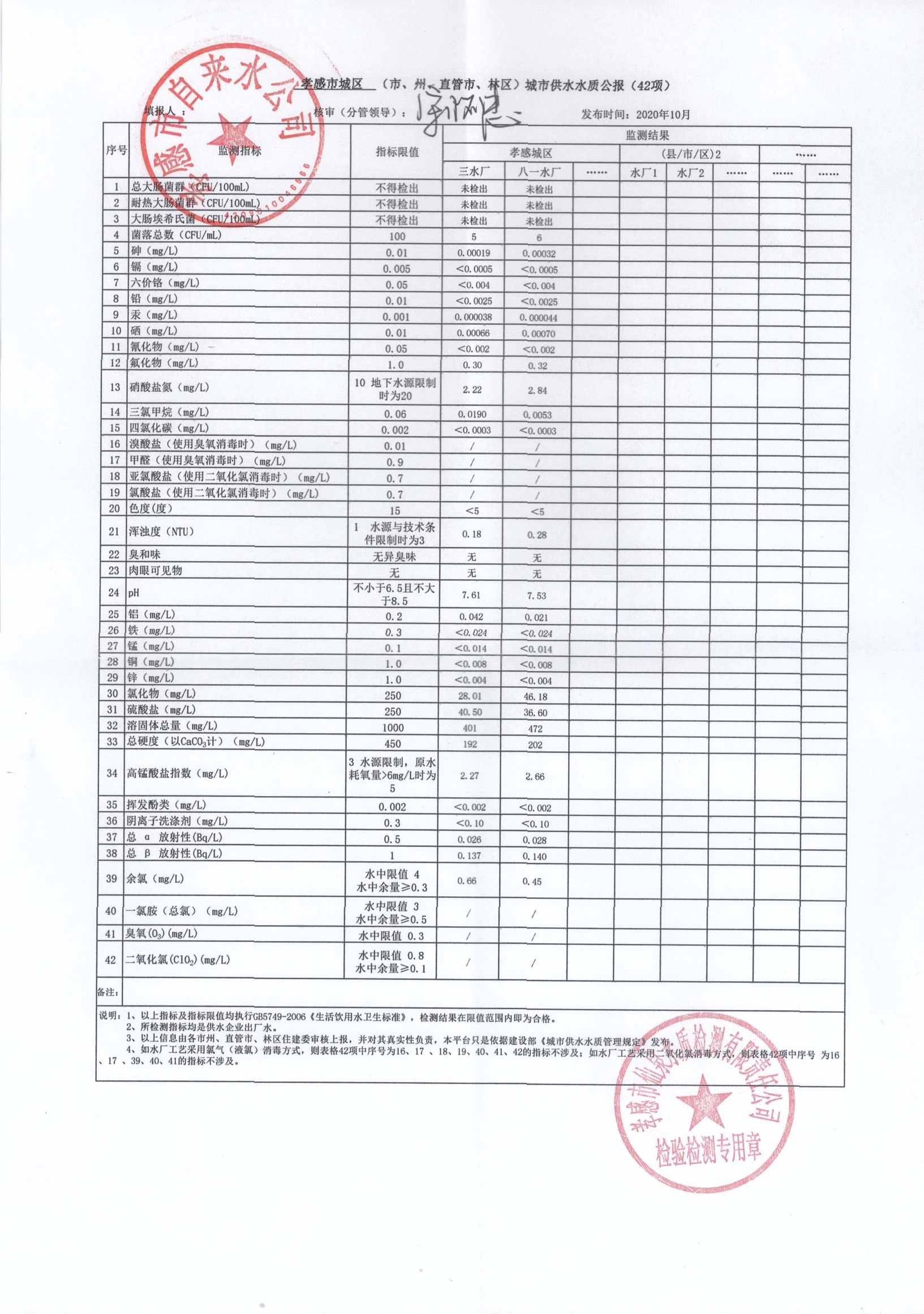 2020年10月水質(zhì)報告